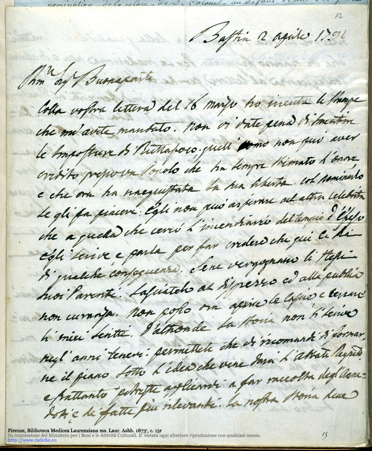 lettera di Pasquale Paoli a Napoleone Buonaparte