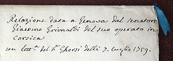 Commissario Giacomo Grimaldi. 1759. Colla Relazione